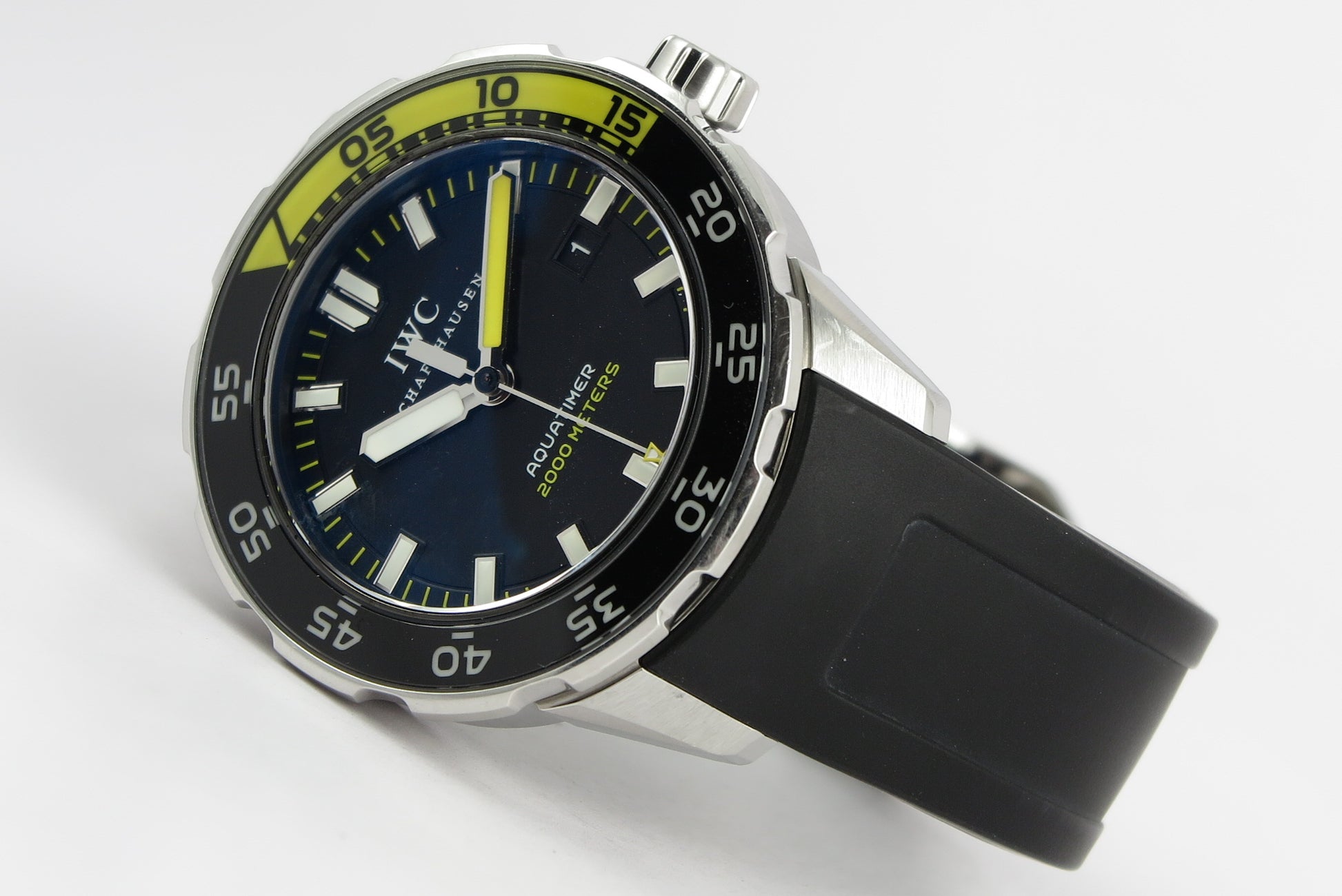 Flot dykker ur fra IWC med keramisk lynette og på gummirem.
