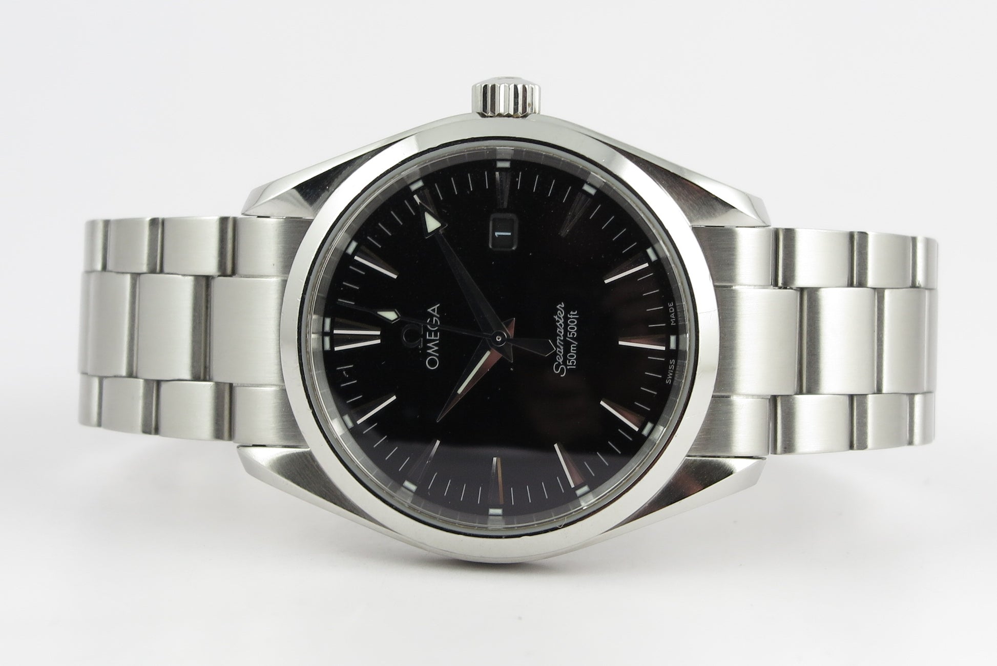 Fin Omega Seamaster med sort skive.