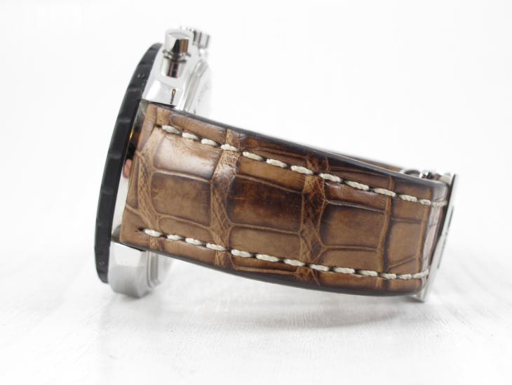 Stor og flot klokke fra Breitling med flot krokodillerem og foldespænde. Uret måler 49 mm og er med automatisk optræk (sidder godt på armen selv om den store strøelse).