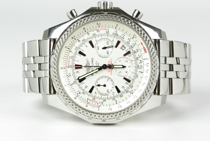 Stort og råt ur fra Breitling med flot hvid skive. Uret måler 48.7 mm og er med automatisk optræk. Solgt fra DK forhandler.