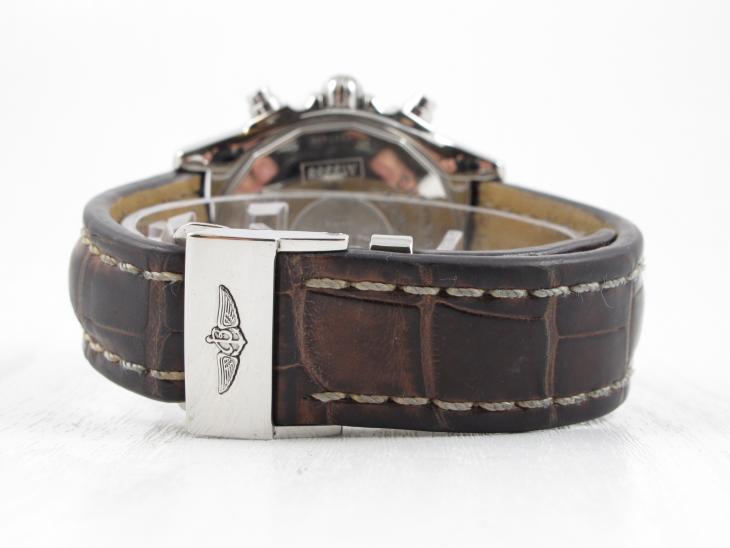 Flot Breitling klokke på læderrem med foldespænde. Uret er med en smuk MOP dial med påsatte diamanter. Uret måler 39mm og er med automatisk optræk. NB.: Uret er med komplet tilbehør og danske papirer.
