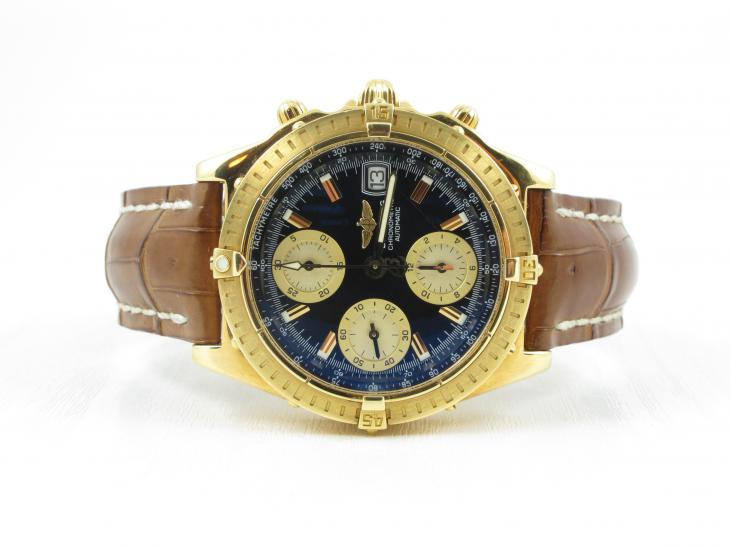 Meget smukt Breitling i 18K massivt guld med croco rem med 18K C spænde. Uret måler 39 mm og er med automatik optræk. NB: Uret kommer fra en samling og har kun været på armen meget meget få gange.