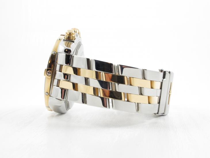 Meget sprød klokke fra Breitling i rosegold/stål (stort set alle disse ure er i alm guld og ikke rosegold). Uret måler 44 mm og er med automatisk optræk. Modellen er udgået, men tilsvarende ur (Chronomat B01 med finere værk) koster vejl. ca. 92.000 kr.