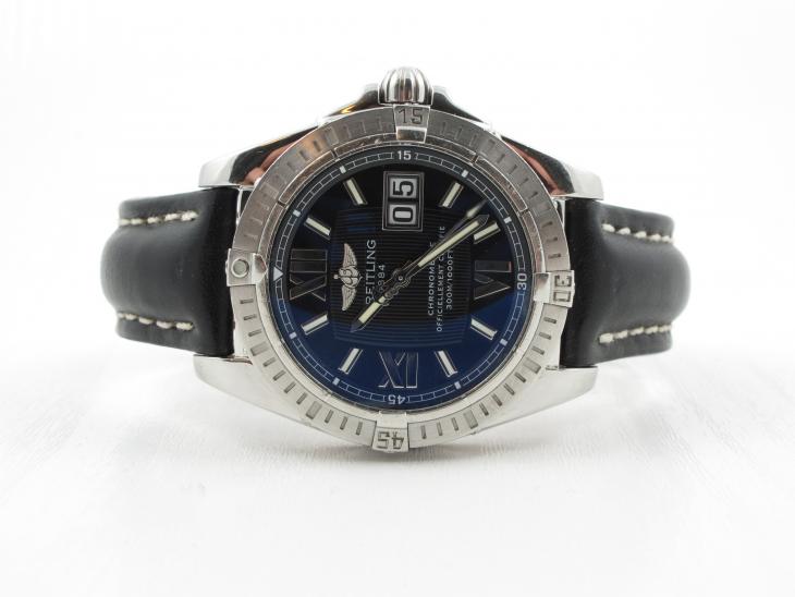 Fint Breitling ur til meget fornuftig pris. Uret måler 41 mm og er med automatisk optræk. Modellen har været i produktion fra 2006-2010.
