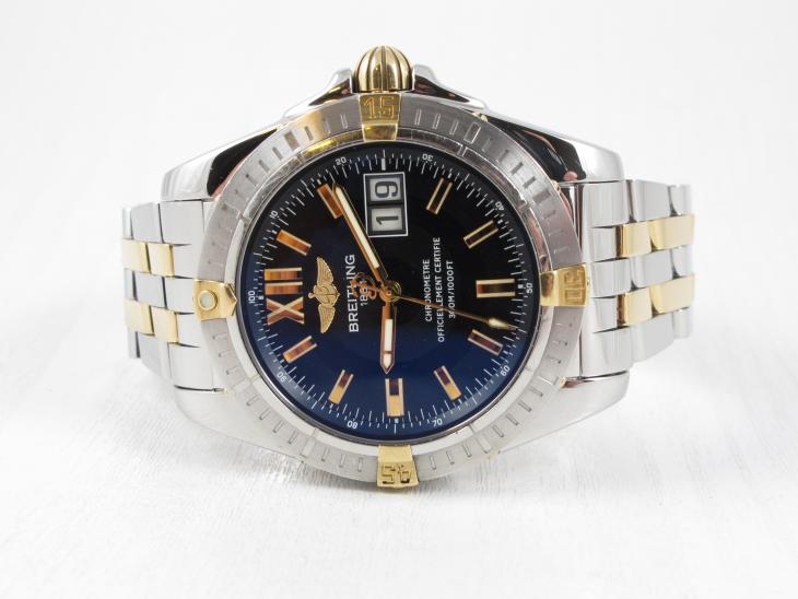 Et lækkert ur fra Breitling i flot stand. Uret måler måler 41 mm og kommer på en flot G/S lænke. Uret har modtaget fuld service i 11. måned 2014 Vejl. nypris er 48.270 kr.