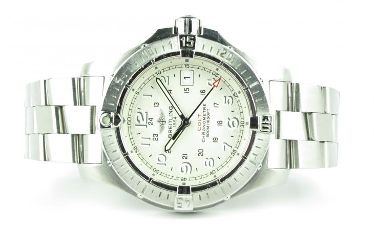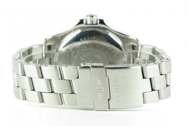 Fint Breitling til meget fornuftig pris. Uret måler 41.1 mm og er med quartz værk. Det er solgt fra DK forhandler og er med åbne papir (har været i produktion fra 2006-2011).