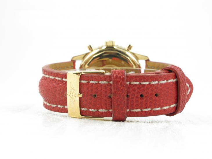 Sjælden udbudt Navitimer 92 i 18K masivt guld. Uret måler 38 mm og er med automatisk optræk. Standen er rigtig flot og remmen er stort set ubrugt (der er lavet et ekstra hul ved inderste hul).