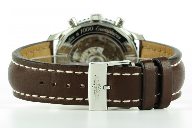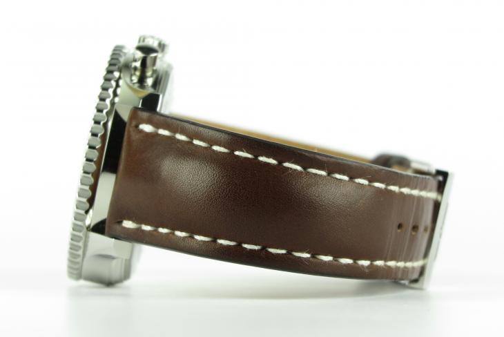 Breitling Navitimer med rem i kernelæder. Uret er limited edt. 1000 stk. Uret måler 46 mm. Værket er med automatisk optræk. Komplet sæt fra dansk forhandler (sept. 2017)