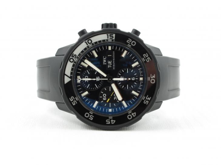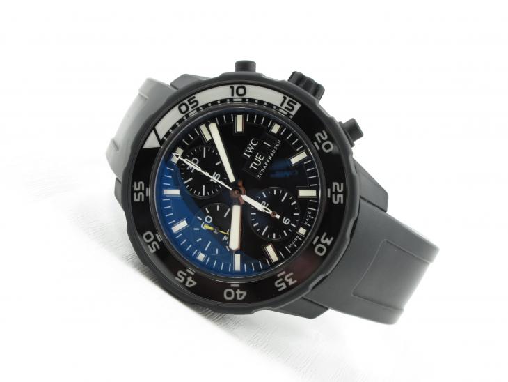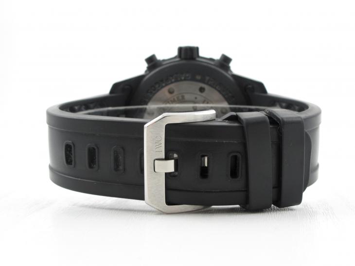 Ikke ofte dette fede IWC ur ses til salg. Uret måler 44 mm og er med automatisk optræk. Det har en gummibelægning på hele overfalde af uret som er meget modstandsdygtig over for ridser. Det er udstyret med IWC´s nye rem skifte system, så kan ikke behøver værktøj for at skifte rem. Vejl. nypris ligger på ca. 51.000 kr og solgt fra DK forhandler i 2013.