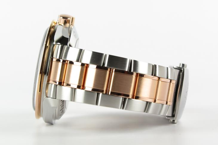 Virkelig lækker Sppedmaster i roseguld/stål på flot lænke. Uret måler 42 mm og er med automatisk optræk (kan nydes igennem glasbagkassen). Det er med safirglas. Solgt fra DK forhandler.