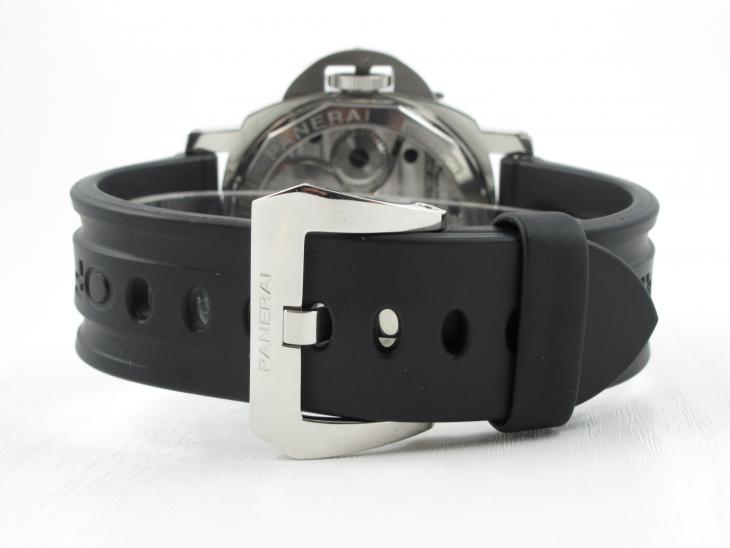Et flot og enkelt ur fra Panerai. Uret måler 44 mm og er med manuelt optræk. Bagkasse i glas med udsigt til det flotte værk.