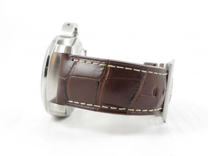 Ekstrem flot Panerai som der er ventetid på. Uret måler 44 mm og er med automatik optræk. Det er deres nye in house 3 days værk som kan nydes igennem glasbagkassen.