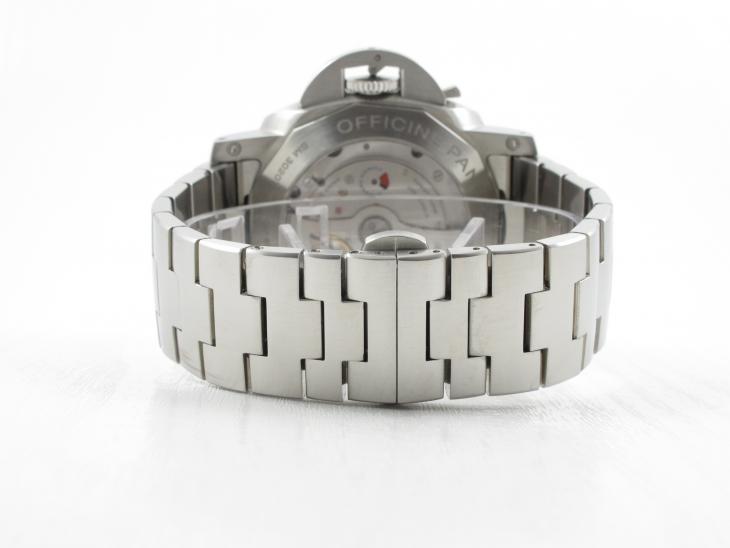 Ekstrem flot Panerai som måler 44 mm og er med automatik optræk. Det er deres nye in house 3 days værk som kan nydes igennem glasbagkassen. Uret har GMT funktion og power reserve på bagsiden. Der kan monteres rem på uret hvis man vil skifte lidt. Vejl. nypris er 58.855 kr.
