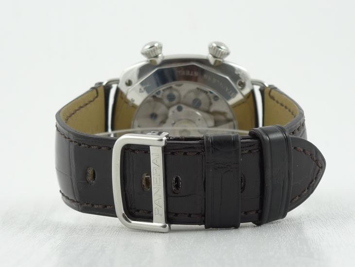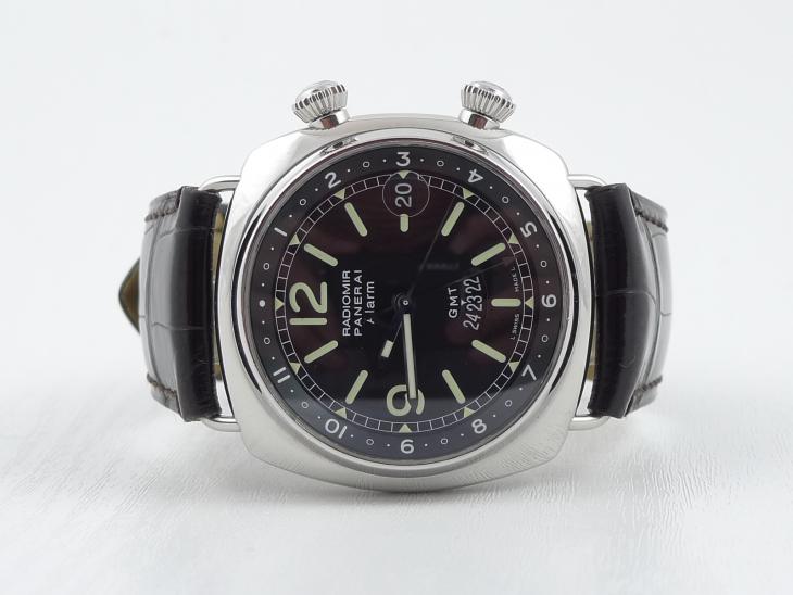Mærke: Panerai Model: PAM 98 Årgang: 2006 Tilbehør: Box, papir og ceritfikat Et frækt og lækkert ur fra Panerai på 42 mm. Uret har GMT visning og indbygget mekanisk alarm. Uret er med automatisk optræk og kommer på et flot cocro rem med foldespænde. Vejl. nypris er 54.300 kr.