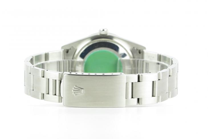 Rolex Date med sort skrive. Uret måler 34 mm. Værket er med automatisk optræk. Komplet sæt Uret er en T-serie
