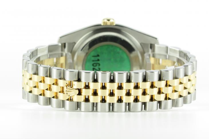 Klassisk Rolex Datejust i guld/stål udgave. Uret måler 36 mm og er med automatisk optræk.