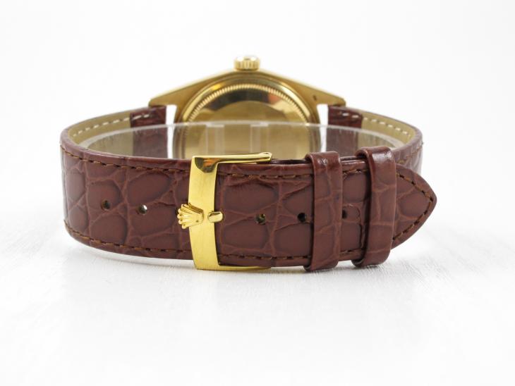 Utrolig smukt DayDate i 18k guld, på "after marked" rem og spænde. Uret måler 36mm og er med automatisk optræk. Uret er en 2.7mil serie.