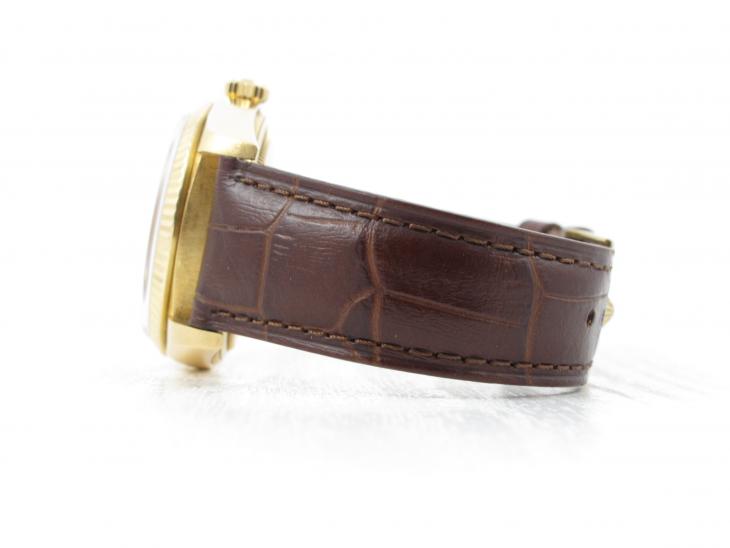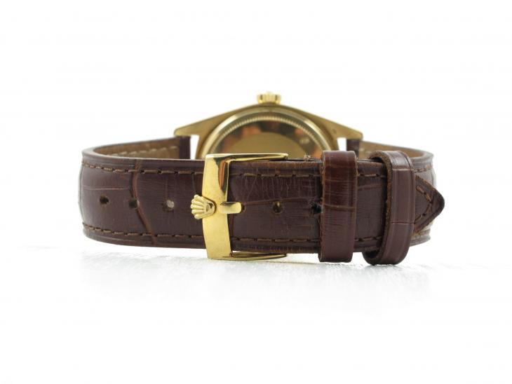 Kommer på original brun Rolex alligatorrem med 18k Rolex spænde.