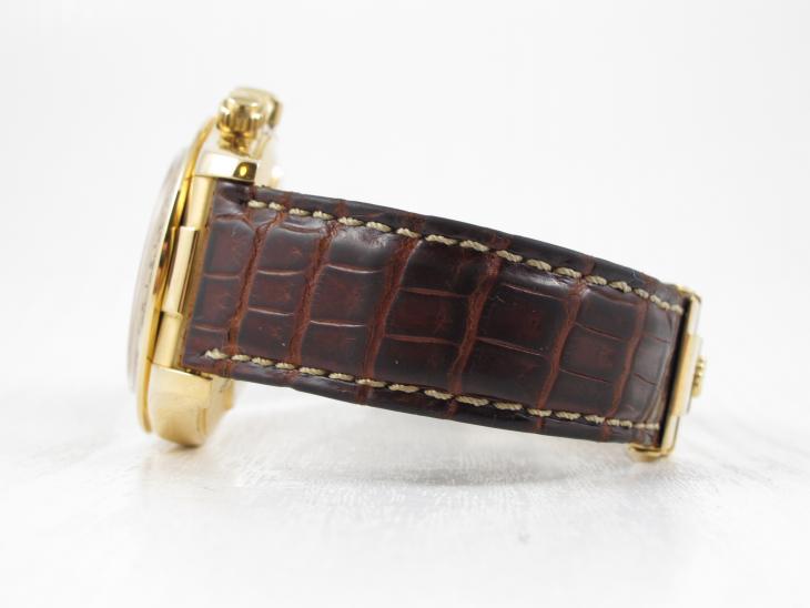 Et super lækkert ur fra Rolex med flot hvid skive. Uret er udført i 18K guld og 18K foldespænde på orginal Rolex rem. Uret måler 40 mm og er med automatisk optræk. Det er en A serie. Vejl. nypris er ca. 170.000 kr.