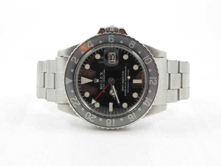 Sjælden udbudt Rolex GMT Master som komplet sæt med boks, papir og certifikat - se billeder. Uret måler 40 mm og er med automatisk optræk. Serie nummer er 1.9 mil, uret er produceret i 1968, men solgt 10/7-1970 ved Klarlund i København. Lænken er en USA Rivet C+I fra 1978. Skive og viser er i fuld tritium og flot patineret, indlæget er det gamle "fat front" som også er rigtig flot patineret.