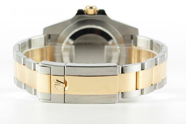 Rolex GMT master II i Guld/Stål med keramisk lynette Værket er et Rolex in-house Cal. 3186 med automatisk optræk. Uret måler 40 mm. Z-serie.