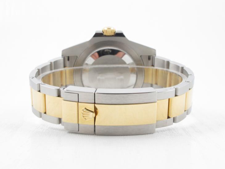 Seneste udgave af Rolex GMT Master II i guld/stål udgaven. Uret måler 40 mm og er med automatisk optræk. Vejl. nypris er 84.900 kr. NB.: Købt ved DK forhandler Juni 2012 og i SUPER stand, kun været på armen få gange.