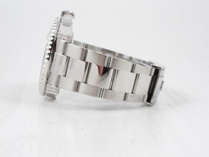 Super smukt Rolex GMT-Master II i den helt tunge ende. Uret er udsmykket med diamanter både på kasse og lynetten. Lynetten er udsmykket med 36 klare diamanter med en sammenlagt vægt på 5.02ct, samt 12 sorte diamanter med en sammenlagt vægt på 1.80ct. Hornene og crown guards'ne er udsmykket med 84 klare diamatner med en sammenlagt vægt på 0.84ct. Uret er udsmykket som Rolex GMT-Master II Ref.nr.: 116759/2 som har en vejl. nypris på: 567.300,-DKK. Det måler 40mm og er med automatisk optræk. NB.: Der medfølger vurderingspapirer med en vurdering på 192.000,-DKK