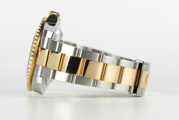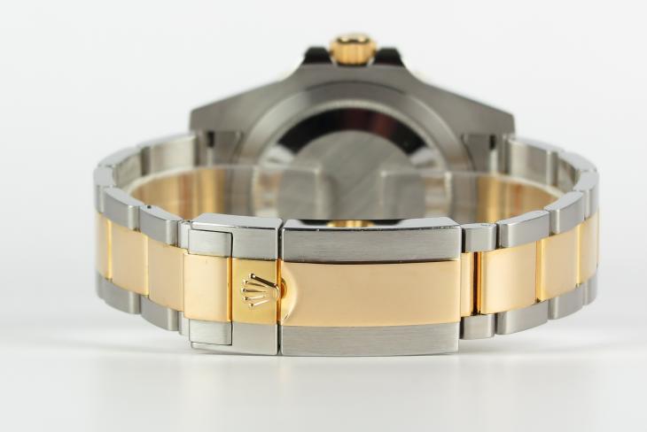 Nyeste model af Rolex GMT Master i guld/stål udgaven. Uret måler 40 mm og er med automatisk optræk.