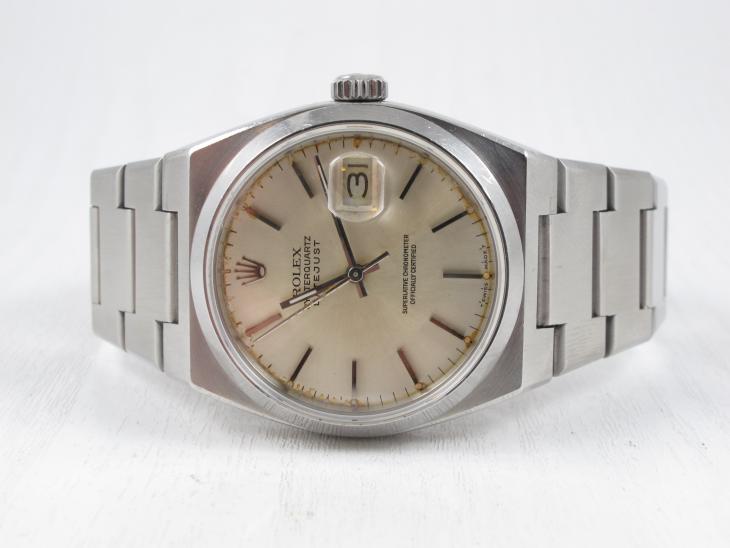 Fint Rolex OysterQuartz i stål. Uret er med lidt patina på skiven. Uret måler 36mm og er med quartz værk.