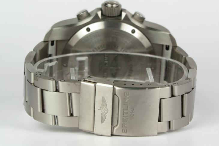 Super lækkert pilot ur fra Breitling udført i titianium. Uret er med Breitlings SuperQuartz værk som i denne model er udstyret med stort set alle tænkelige funktioner. Uret har blandt andet en tilt funktion som tænder baggrundslyset i uret når uret bevæges op i læsebar position. Uret lades op med et magnet-stik som følger med, ydermere kan data fra uret opsamles med USB stik til computeren. Uret kommer som komplet sæt med boks og papirer fra Hvelplund og det fremstår i nærmest nystand. Det måler 46mm og er med quartzværk. Vejl. Nypris: 52.700,- DKK