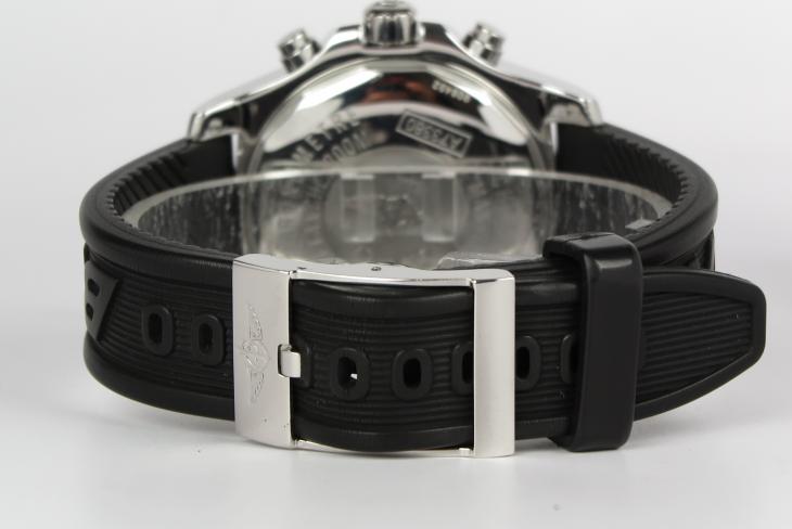 Super fed chronograf fra Breitling med sort skive. Uret måler 41mm og er med quartz værk. NB.: Uret er med danske papirer.