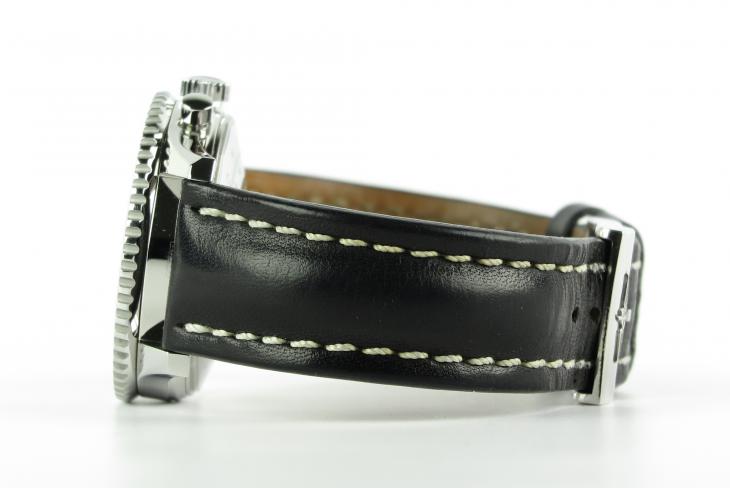 Super flot Breitling Navitimer med sort skive og sort læderrem. Uret måler 42 mm og er med automatisk optræk.