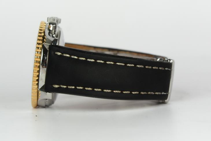 Fed Navitimer fra Breitling med sort skive og lynette udført i guld. Uret er på fin læderrem med foldespænde. Uret måler 41,5mm og er med automatisk optræk.
