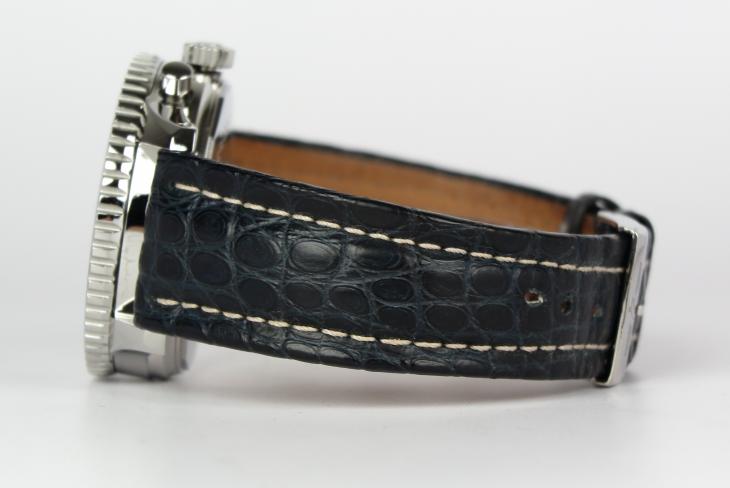 Super fint Breitling Navitimer, med flot blå skive og rem. Uret måler 42mm og er med automatisk optræk.