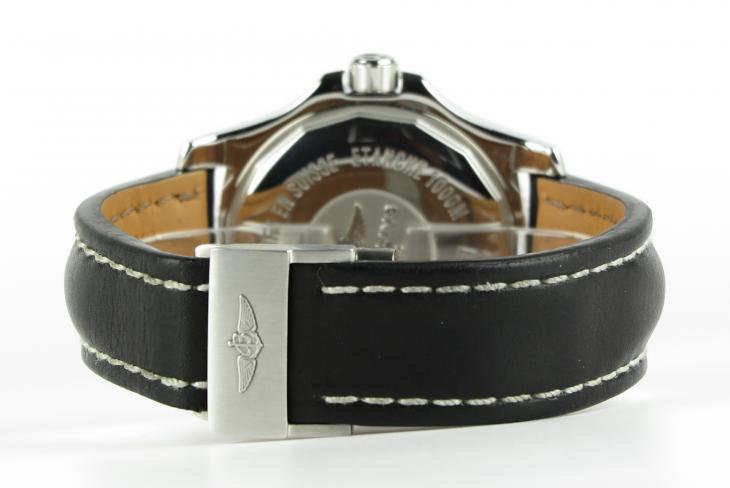 Breitling Superocean på læderrem med tilkøbt Breitling foldespænde. Uret måler 44 mm Værket er med automatisk optræk. Uret er med danske papirer Vejl. pris er 30.200 kr