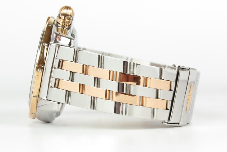 Super fint Bretiling udført i guld og stål med diamant besat lynette. Uret er med danske papirer fra Klitgaard i Aalborg. Det måler 44mm og er med automatisk optræk. NB.: Orginal kvittering på 136.000,- DKK medfølger.