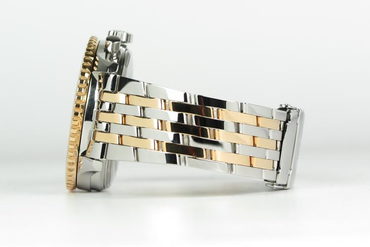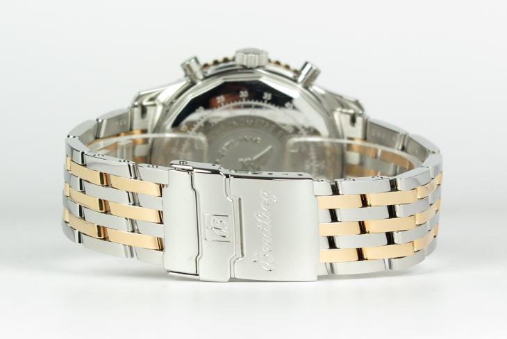 Super fint og sjældent udbudt Breitling Cosmonaute udført i guld og stål. Uret er med flot hvid skive og guldfarvede sub-dials. Det måler 42mm og er med automatisk optræk.