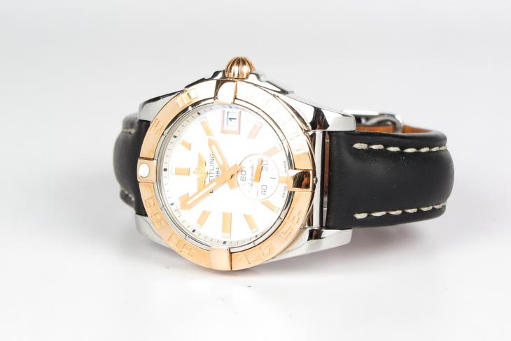 Super fint Breitling udført i guld og stål med flot skive. Uret er i fin stand og kommer som komplet sæt med boks og papirer. Det måler 36mm og er med automatisk optræk.