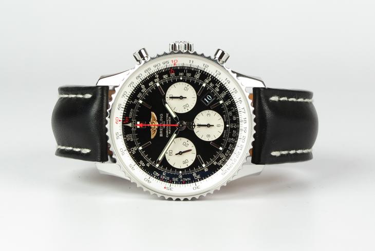 Nyeste skud på stammen fra Breitling´s Navitimer serie. Uret måler 43 mm og er med automatik optræk og 70 timers gangreserve. Uret er solgt 12. måned 2014 fra Hvelplund i København og fremstår i meget flot stand. Vejl. nypris med den viste rem er ca. 58.300 kr.