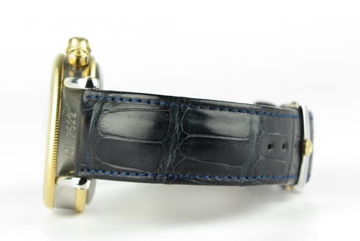 38 mm 18 k / stål Chronoswiss med 12 timers kronograf og månefase samt kalendervining. Uret har automatisk optræk Uret kommer i en meget fin trækasse og sættet er komplet med papirer.