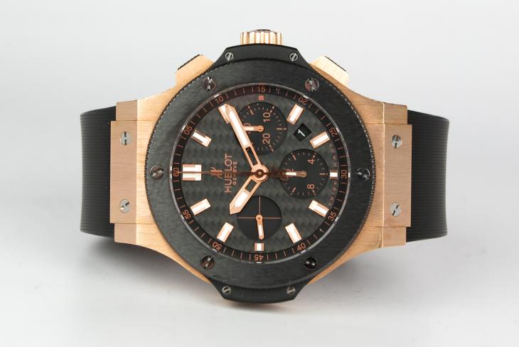 Top lækkert Hublot Big Bang i 18K rose gold. Uret er på gummirem med 18k rose gold foldespænde. Uret måler 44 mm og er med automatisk optræk.