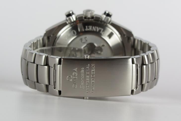 Super fint Planet Ocean fra Omega med chronograf funktion. Uret måler 45.5mm og er med automatiskoptræk Uret med danske papirer