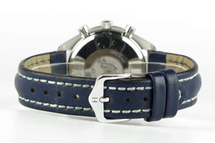 39 mm Omega Speedmaster triple date Uret har automatisk optræk Kommer på flot blå læderrem Uret er uden tilbehør
