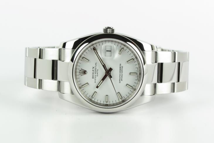 Smukt Rolex ur med fin hvis skive. Uret måler 34 mm og er med automatisk optræk. Brugte ganske lidt, så rigtig flot stand.