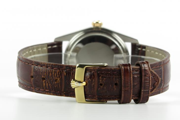 Datejust i guld/stål på krokodillerem. Uret måler 36 mm. Værket er med automatisk optræk. Dermed følger servicepapirer fra Klarlund 2016 samt boks.