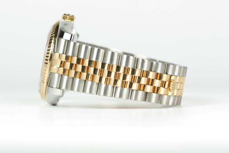 Super fint Rolex Datejust udført i guld og stål. Uret er på en smuk Super Jubilee lænke som har skjult foldelås. Uret måler 36mm og er med automatisk optræk. Uret er en z-serie med ROLEXROLEX i kransen. Vejl. Nypris: 73.500,- DKK NB.: Uret er med danske papirer fra Knud Pedersen i Aarhus.