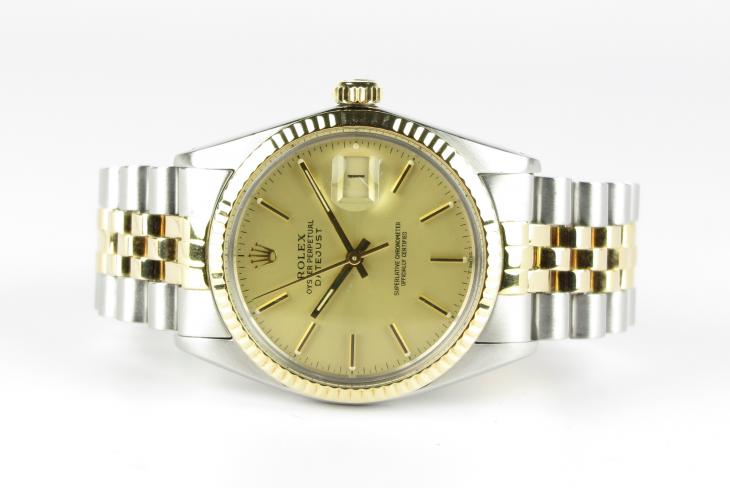 Datejust i Guld/stål med guld skive og 18 karats guld lynette. Uret er komplet med boks og papirer