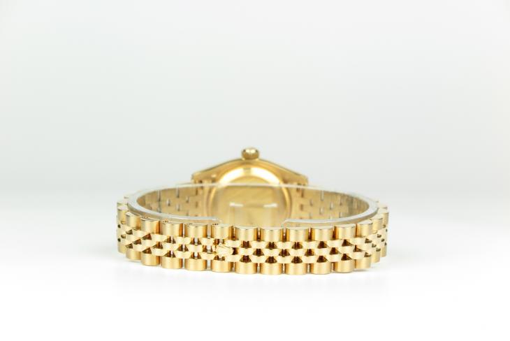 Super smukt dame Rolex i 18k guld. Uret er med ædelstens besat MOP-dial. Uret måler 26mm og er med automatisk optræk. NB.: Uret er med danske papirer.