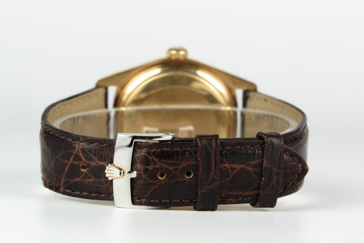 Rigtig lækkert guld ur fra Rolex i pæn stand. Uret måler 36 mm og er med automatisk optræk. Det er en 5.9mil serie med saphirglas.