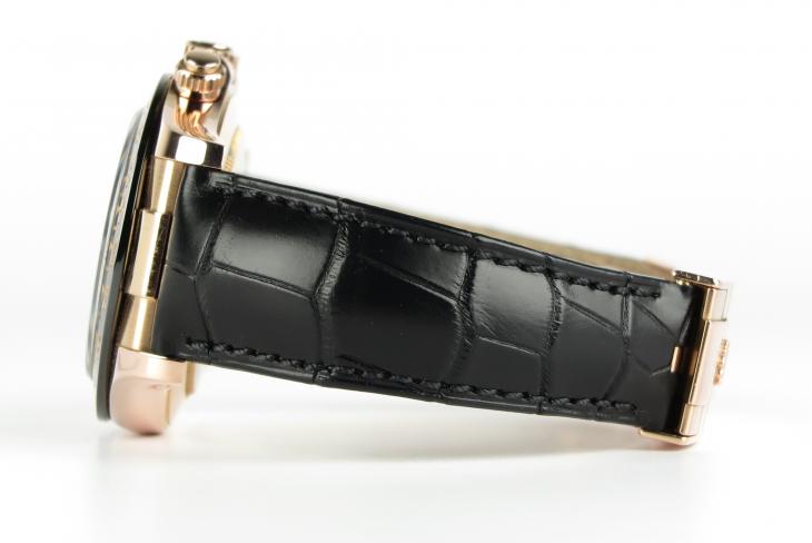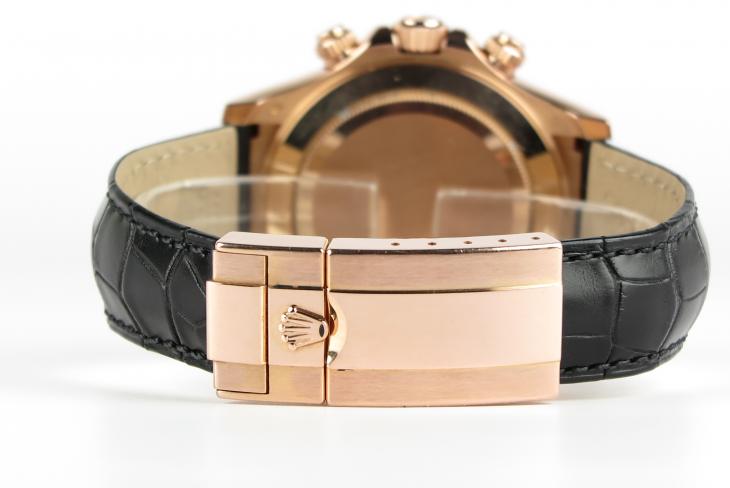 40 mm 18 karat everrose gold Daytona med keramisk lynette.Værket er et Cal 4130 med automatisk optræk. Uret har en helt ny original krokodilleskinds rem samt et foldespænde i 18 karat everrose gold. Vejl. udsalgspris er 204.990 dkr.
